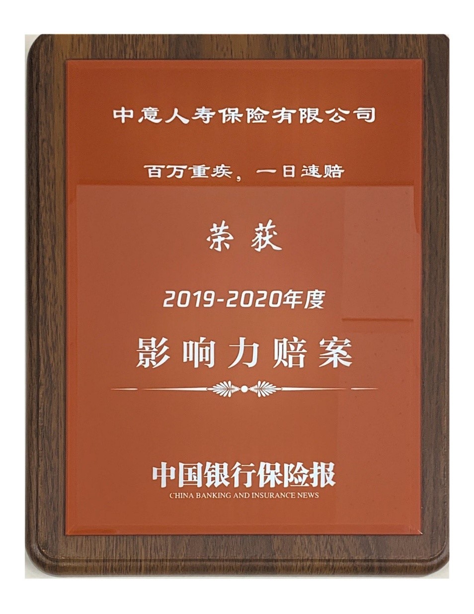 【新聞】中意人壽“百萬重疾,一日速賠”榮獲“2019-2020年度影響力賠案”
