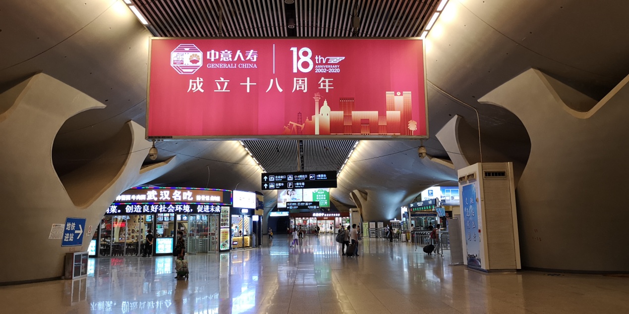 自2020年7月7日起,旅客朋友們陸續在福州、成都、武漢、杭州、洛陽、濟南、西安、南京等八地高鐵站廳內觀賞到中意人壽18周年主題廣告。