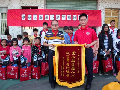 捐贈(zèng)儀式上,學(xué)生代表小芬(化名)發(fā)言,表示會(huì)努力學(xué)習(xí),成為對社會(huì)有用的人,以此回報(bào)大家的關(guān)心與厚愛。隨后,中意人壽清遠(yuǎn)中支總經(jīng)理代表分公司跟大樹墩小學(xué)黃炳生校長交接愛心基金和捐贈(zèng)物資,校方贈(zèng)予“愛心助學(xué)暖人心,扶貧幫困助棟梁”的錦旗以示感謝。儀式結(jié)束后,中意人壽廣東省分公司黨支部書記在班級(jí)里為同學(xué)們上了一堂特殊的黨課,告訴孩子們國家興亡、匹夫有責(zé),將來為國家繁榮昌盛做貢獻(xiàn)。在淡淡夕陽照射下的操場上,中意愛心小分隊(duì)帶領(lǐng)孩子們做游戲,在滿滿的歡笑聲中結(jié)束了這一次的公益之旅。