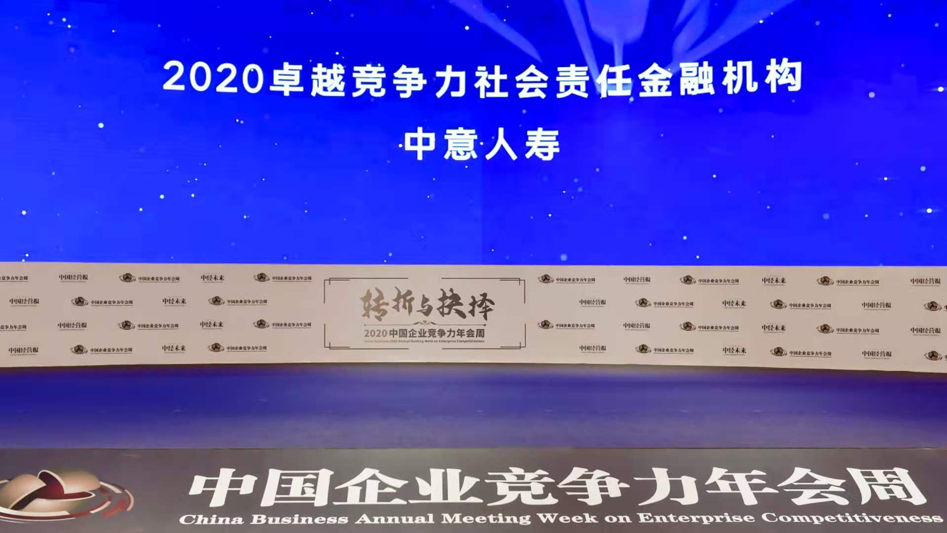 在同期舉行的“2020卓越競爭力保險公司”頒獎盛典上,中意人壽榮膺“2020卓越競爭力社會責任金融機構”。