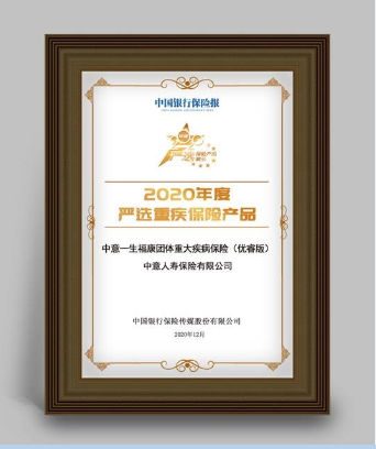 【新聞】中意人壽“一生福康” 榮獲“2020年度嚴(yán)選重疾保險(xiǎn)產(chǎn)品”獎(jiǎng)項(xiàng)
