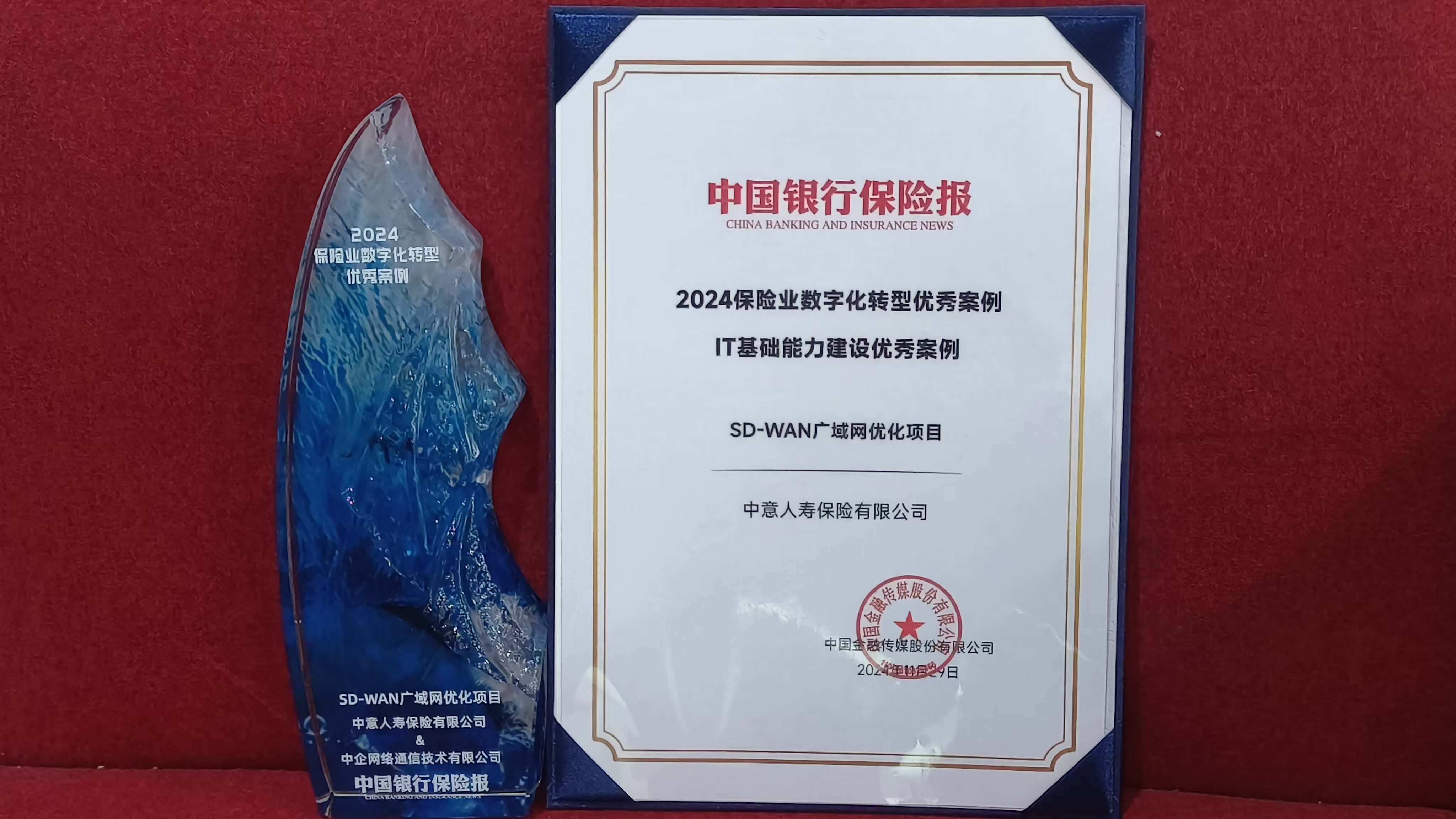 11月29日,由行業(yè)權(quán)威媒體《中國銀行保險報》主辦的“2024金融業(yè)(保險)數(shù)字化轉(zhuǎn)型”大會在廣東汕頭召開,會上發(fā)布了“2024中國保險業(yè)數(shù)字化轉(zhuǎn)型案例”。中意人壽保險有限公司(以下簡稱中意人壽)創(chuàng)新推出的員工福利網(wǎng)絡(luò)服務(wù)平臺項目和SD-WAN廣域網(wǎng)優(yōu)化項目分別榮獲“數(shù)字化運(yùn)營優(yōu)秀案例”和 “IT基礎(chǔ)能力建設(shè)優(yōu)秀案例”兩項大獎,彰顯了公司在推動保險業(yè)數(shù)字化轉(zhuǎn)型方面的不懈努力及信息科技建設(shè)的領(lǐng)先實力,為公司的數(shù)字化轉(zhuǎn)型之路再添濃墨重彩的一筆。