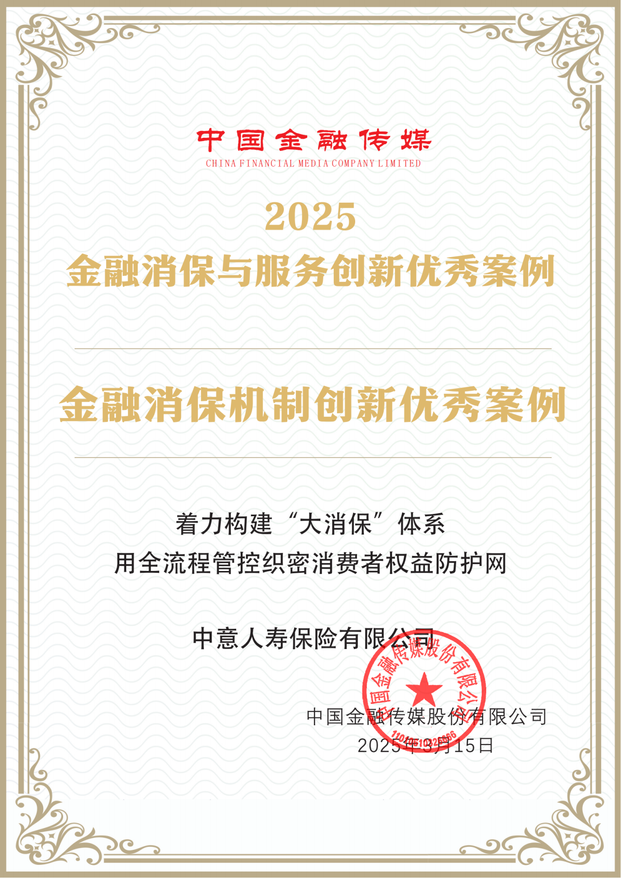 【新聞】中意人壽榮獲“2025金融消保與服務(wù)創(chuàng)新優(yōu)秀案例”雙項(xiàng)殊榮