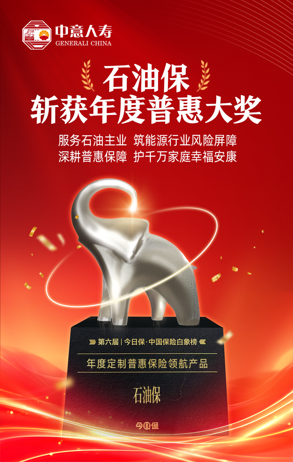 2025年12月18日,2026年度今日保?保險白象榜重磅揭曉,中意人壽專為中國石油天然氣集團有限公司(簡稱“中國石油”)各級單位及上下游企業定制的中意普惠石油保石油企業員工自選保險產品計劃(簡稱“石油保”),憑借對石油人風險需求的精準響應與普惠保障的扎實落地,榮獲“年度定制普惠保險領航產品”殊榮。這一行業權威獎項,不僅是對“石油保”產品本身的高度認可,更彰顯了公司作為石油金融企業,深耕主業、守護石油人的責任擔當。